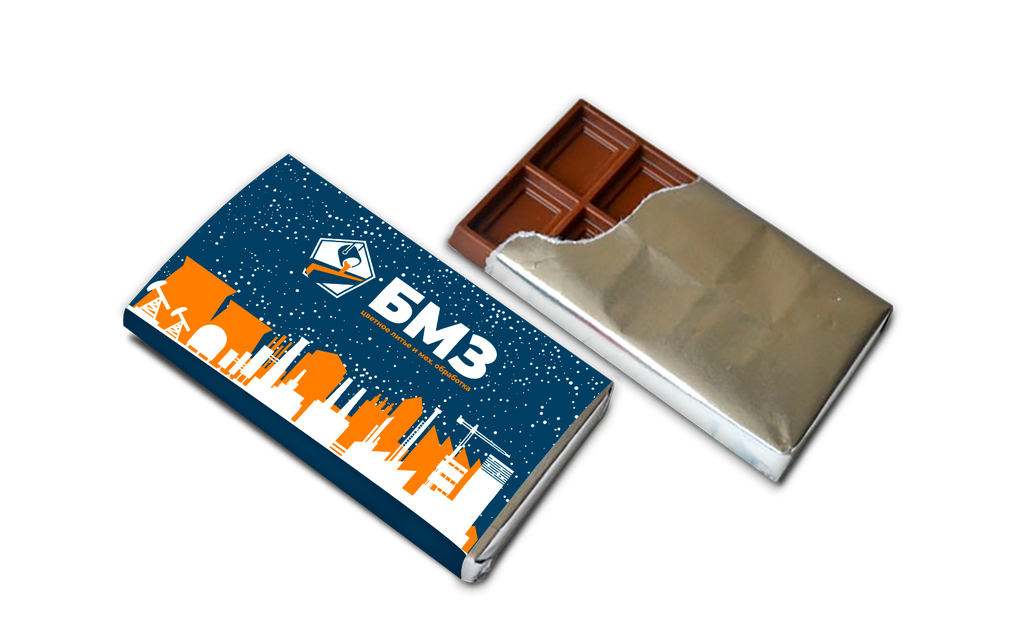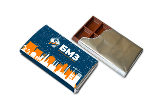 Шоколад с логотипом 27 грамм из тёмного или молочного шоколада.