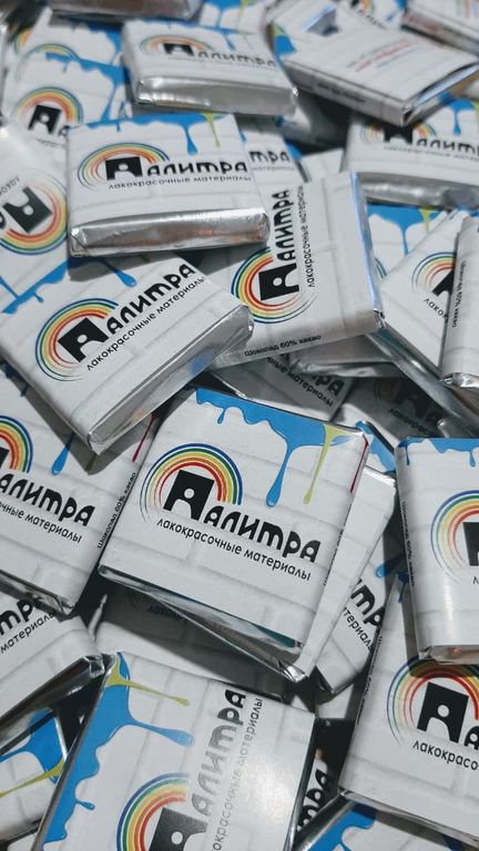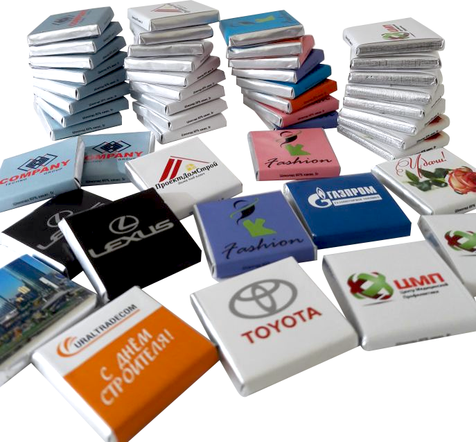 Предлагаем Вам шоколадные плитки 5г с Вашей фирменной этикеткой и логотипом. Такой сувенир сочетает в себе функционал подарка с возможностью полиграфического исполнения. Шоколадки станут отличным бизнес-сувениром на выставке или презентации, комплиментом за покупку, а также прекрасно подойдут для подачи к горячим напиткам вашим любимым гостям.